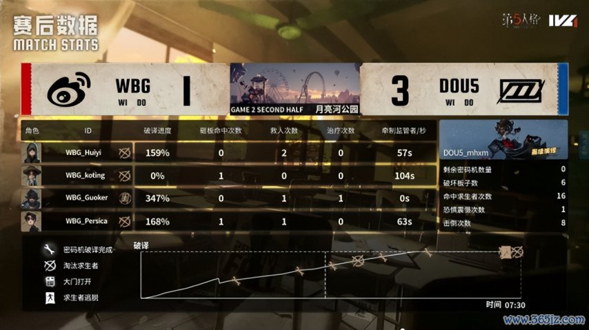北京WBG的求生者选拔了魔术师、木偶师、脱逃众人、弓箭手;DOU5的监管者mhxm选拔了杂货商。(BAN先知、大副、庆幸儿、时势学家)